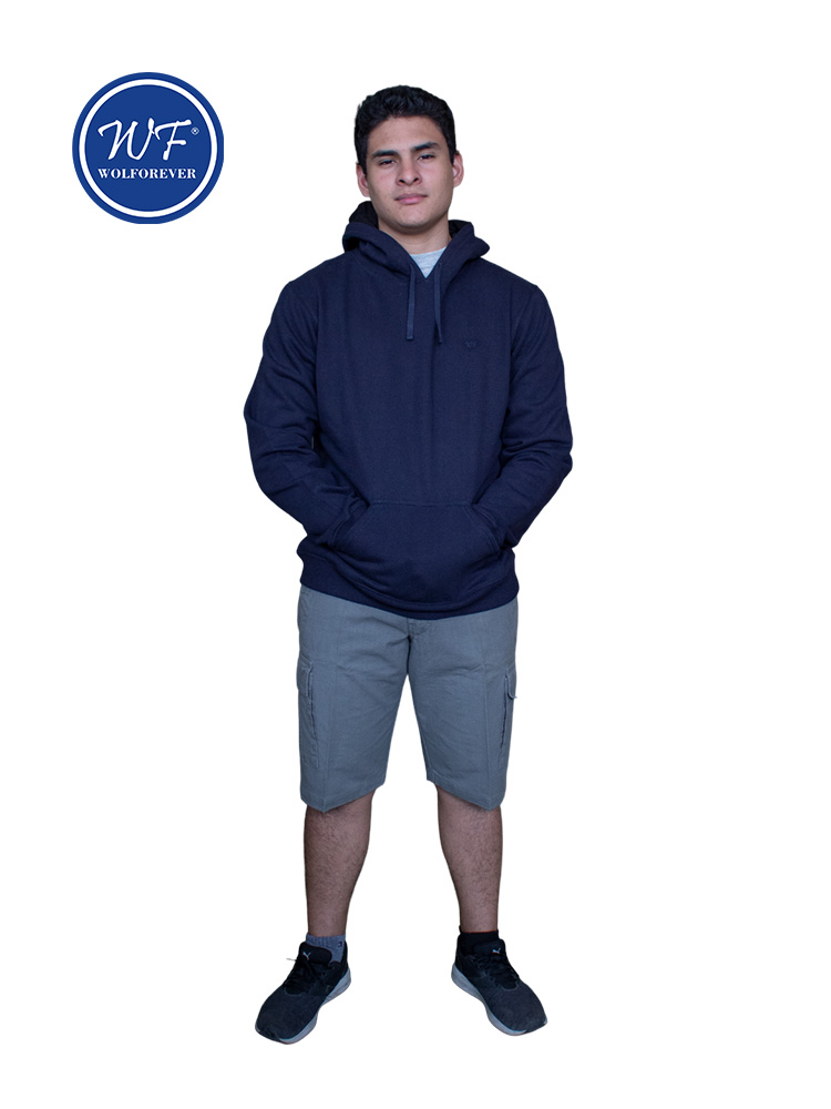 POLERA CERRADA CON CAPUCHA, LOGO Confeccionada con tela franela 100% algodón reactivo, con capucha forro algodón, con logo bordado .Viene con bolsillos y cordones ajustable.