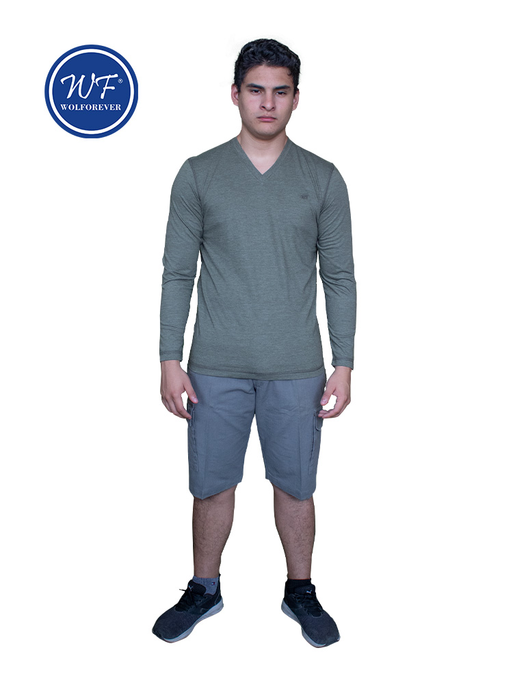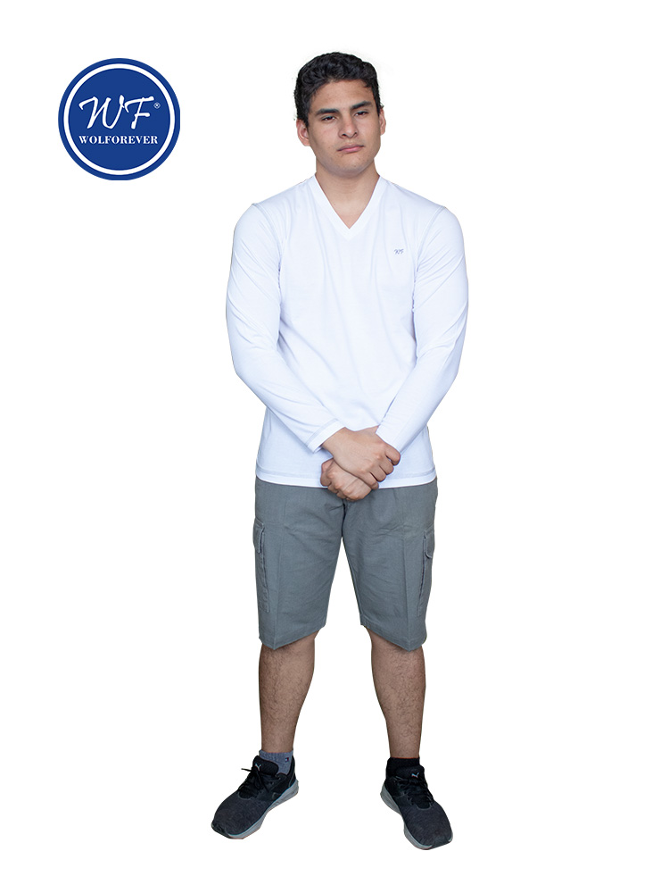 T-SHIRT MANGA LARGA, CUELLO V, 5 HILOS, LOGO, Confeccionada con tela jersey 100%, cinco hilos visibles, algodón reactivo, con logo bordado.